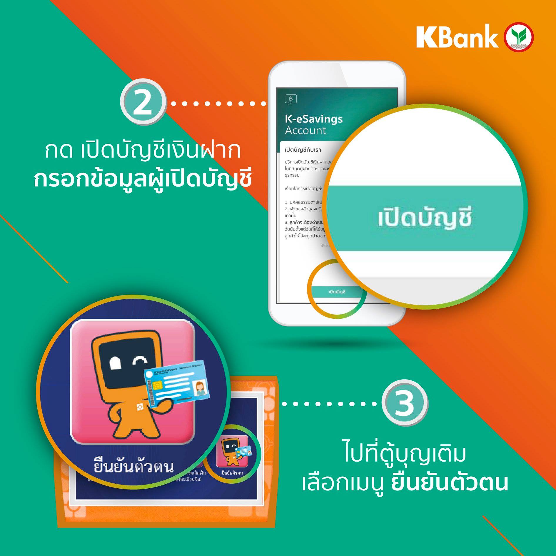 ขั้นตอนการเปิดบัญชีเงินฝาก K Plus และยืนยันตัวตนที่ตู้บุญเติม