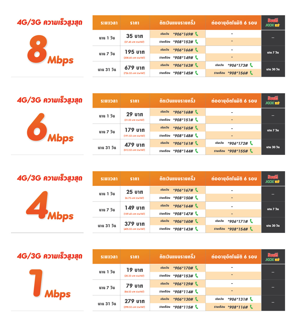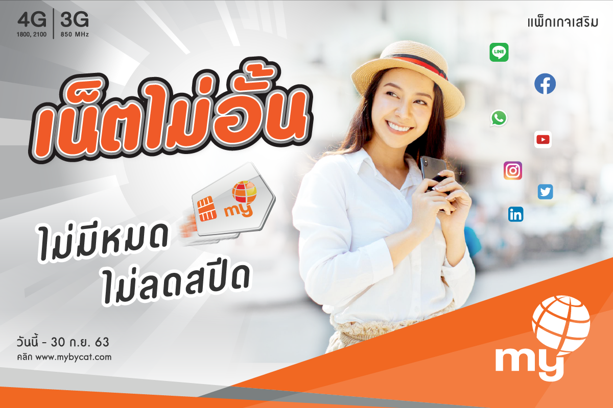my CAT จัดโปรโมชั่นพิเศษเดือนกันยายน เอาใจคนชอบเน็ตไม่อั้น กับโปรเน็ตไม่อั้น ไม่มีหมด ไม่ลดสปีด มีให้เลือกความเร็วหลายระดับตั้งแต่ 8 Mbps , 6 Mbps , 4 Mbps , 1 Mbps , 512 Kbps และ 314 Kbps สำหรับเน็ตความเร็ว 8Mbps ราคาเริ่มต้น 1 วัน 35 บาท นาน 7 วัน 195 บาท และ นาน 31 วัน ราคา 679 บาท (ยังไม่รวม VAT) พิเศษสำหรับใครที่ซื้อโปรแบบ 7 วันขึ้นไป ฟรีใช้งาน JOOX แบบไม่อั้น ตามจำนวนวันที่ซื้อโปร โปรโมชั่นตั้งแต่วันนี้ – 30 กันยายน