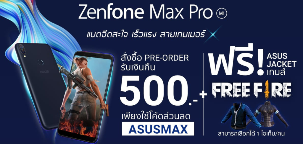 Shopee จัดโปรโมชั่น Zenfone Max Pro พรีออเดอร์รับเงินคืน 500 บาท พร้อมไอเทม Free Fire